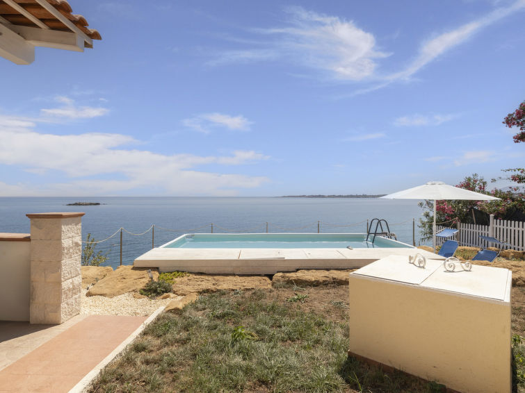 Twee onder één kap woning "Norbert". In de plaats Punta Milocca, 11 km van het centrum van Siracusa, zonnige ligging, 20 m van zee, 100 m van het strand. Voor alleengebruik: terrein 600 m2 (omheind), kleine tuin op verschillende niveaus, openluchtzwembad (verhoogd) (3 x 5 m, 100 cm diepte, seizoensgebonden beschikbaarheid: 01.Apr. - 31.Okt.) met trap. Douche/WC bij het zwembad, onderhoud zwembad door de eigenaar/tuinman. Beschikbaar: fietsen (1). Parkeerplaats op het terrein. Supermarkt 10 km, restaurant 4.5 km, bar 1 km, bushalte 10 km, zandstrand "Milocca" 100 m (klein), rotsstrand "Milocca" 80 m. Attracties in de buurt: Noto 30 km, Marzamemi 49 km, Ispica 50 km, Isola delle correnti Punto Sud Sicilia 56 km. Bekende skigebieden kunnen gemakkelijk worden bereikt: Etna Sud Punto partenze Rifugio Sapienza 106 km. Wandelgebied Riserva Naturale Laghetti del Cassibile 23 km, Riserva Faunistica di Vendicari 37 km. Auto noodzakelijk. Gesloten residentie met een elektrische deur. Het leidingswater heeft geen drinkwaterkwaliteit.
