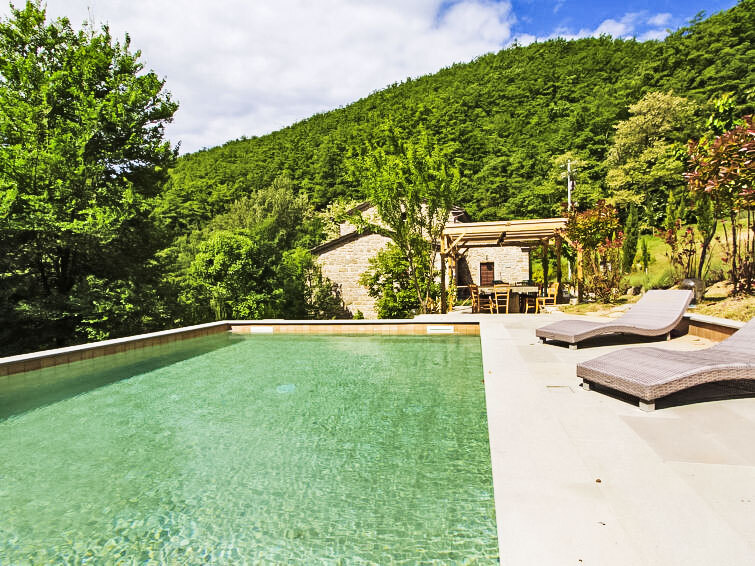 Landhuis "La Valchiera", gerenoveerd, omgeven door bomen. 5 km van het centrum van Sansepolcro, rustige, zonnige, verhoogde ligging, 10 m van de rivier. Voor alleengebruik: terrein 20 ha, tuin op verschillende niveaus, Natuurlijke vijver, openluchtzwembad (10 x 5 m, 100 - 130 cm diepte, seizoensgebonden beschikbaarheid: 13.Mei. - 06.Okt.). Hot tub, patio, tuinmeubelen, barbecue, onderhoud zwembad door de eigenaar/tuinman. In het huis: internetaansluiting, infrarood sauna, ontspanningsruimte, spa centrum, wasmachine, droger. Kok op verzoek. Parkeerplaats op het terrein. Levensmiddelenwinkel 4 km, supermarkt 4 km, restaurant 2 km, bar 2 km, bushalte 50 m. Manege 2 km. Attracties in de buurt: Anghiari 15 km, Arezzo 40 km.