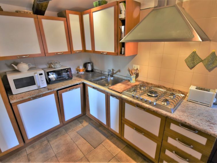 Appartement 3-kamers 80 m2 op de 3e verdieping. Comfortabel en smaakvol ingericht: woon-/eetkamer met afgeschuinde daken met 1 2-pers divanbed, TV, video, radio en air-conditioning. Uitgang naar het terras, op het zuiden. 1 kamer met 1 2-pers bed, douche/WC en air-conditioning. 1 kamer met afgeschuinde daken, hoogte van het plafond 150 - 250 cm, zonder kast met 1 bed, 1 uitschuifbaar bed en bad/bidet/WC. Open keuken (mini-oven, afwasmachine, 5 kookpitten (vlammen), broodrooster, waterkoker, magnetron) met eettafel. Gas-verwarming. Parketvloeren. Terras 16 m2. Terrasmeubelen. Mooi panoramazicht op de plaats en het kanaal. Ter beschikking: wasmachine. Internet (Internet (WiFi), gratis). Geen lift. Vanaf de ingang op de 2e verdieping bereikt men de woonkamer via een binnentrap. Vanaf de woonkamer leiden 2 traptreden naar een klein terras (houten vloer) met 2 ligstoelen, bank, kleine tafel, parasol en uitzicht op de daken van de stad. De keuken geeft toegang tot de afgeschuinde kamer, afgescheiden van de woonkamer door een gordijn. Er hoeven geen verplichte extra kosten ter plaatse te worden betaald, behalve de lokale belasting. IT027042C2EOOSBXTY