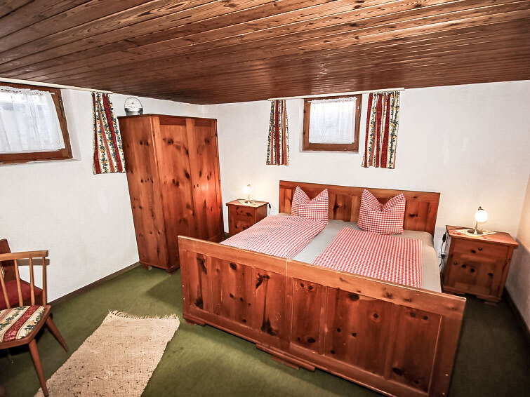 "Fliegerklause", huis 8-kamers 180 m2 op 3 verdiepingen. Rustiek ingericht: hal. Woonkamer met Sat-TV en Flatscreen TV. Keuken (oven, afwasmachine, 5 keramische glas kookplaten, waterkoker, magnetron, diepvriezer, elektrische koffiemachine) met eethoek. Bad/douche, aparte WC. Souterrain: 1 2-pers. kamer met 1 2-pers bed (2 x 90 cm, lengte 190 cm), wastafel. Bovenverdieping: 2 2-pers. kamers, elke kamer heeft 1 2-pers bed (2 x 90 cm, lengte 190 cm), wastafel. Uitgang naar het balkon. 1 2-pers. kamer met 1 2-pers divanbed (2 x 90 cm, lengte 200 cm), wastafel. 1 2-pers. kamer met 1 2-pers bed (2 x 90 cm, lengte 190 cm), wastafel. 1 kamer met 1 bed (90 cm, lengte 190 cm), wastafel. Douche/WC, aparte WC. Groot balkon. Bergruimte. Mooi uitzicht op de bergen en het landschap. Geschikt voor families. Rookvrij huis. Rookmelders.