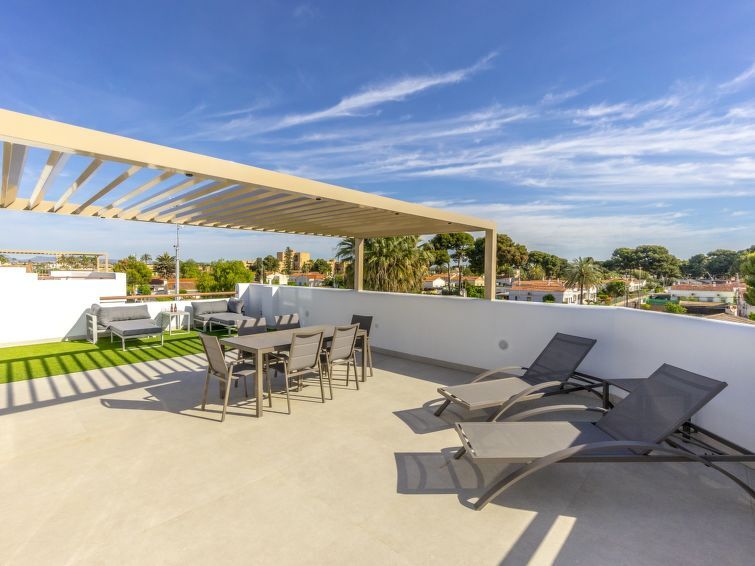 "Tropical Beach Penthouse", dakappartement 3-kamers 64 m2 op de 1e verdieping. Doelmatig en comfortabel ingericht: groot woon-/eetkamer met 1 2-pers divanbed (140 cm, lengte 190 cm), air-conditioning en heteluchtverwarming. Uitgang naar het balkon. 1 kamer met 1 2-pers bed (150 cm, lengte 190 cm), douche/WC, air-conditioning en heteluchtverwarming. 1 kamer met 1 2-pers bed (150 cm, lengte 190 cm), air-conditioning en heteluchtverwarming. Open keuken (oven, afwasmachine, 4 keramische glas kookplaten, waterkoker, magnetron, diepvriezer, elektrische koffiemachine). Douche/WC. Balkon, groot terras 80 m2. Terrasmeubelen, ligstoelen. Uitzicht op de plaats. Ter beschikking: wasmachine, strijkijzer, kinderstoel, kinderbed tot 2 jaar, haardroger. Internet (WiFi, gratis). Geschikt voor families. Niet rokers woning. Geen lift. VV.MU.4442-1 // Reg. Nr.: ESFCTU0000300320008092230000000000000000VV/MU/4442-10