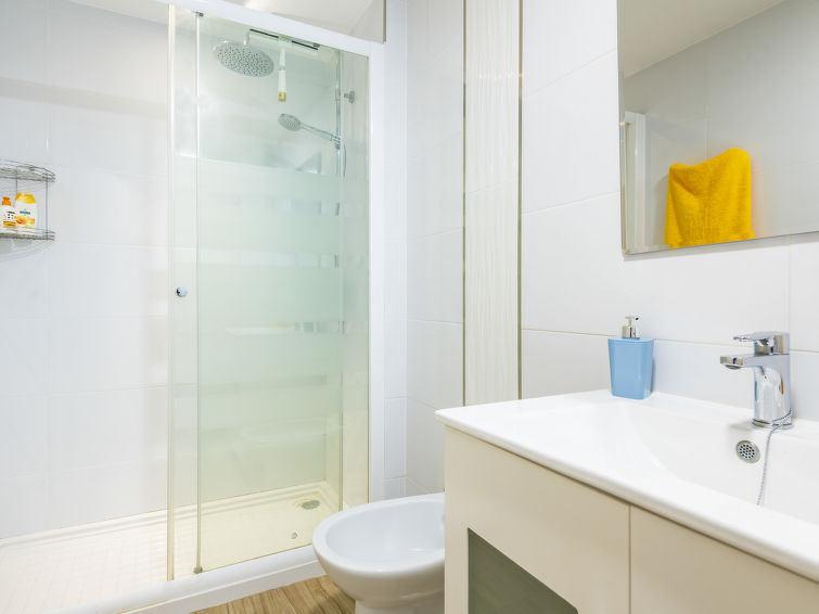 "Orion", appartement 3-kamers 68 m2 op de 1e verdieping. Doelmatig en comfortabel ingericht: woon-/eetkamer met eettafel, Digitale TV, Flatscreen TV, elektrische verwarming en ventilator. Uitgang naar het balkon. 1 kamer met 1 2-pers bed (135 cm, lengte 200 cm), elektrische verwarming en ventilator. 1 kamer met 1 bed (90 cm, lengte 190 cm), 1 uitschuifbaar bed (2 x 90 cm, lengte 190 cm), elektrische kachel en ventilator. Kleine, open keuken (afwasmachine, 3 keramische glas kookplaten, broodrooster, magnetron, diepvriezer, grill, elektrische koffiemachine, pads voor de koffiemachine (Dolce Gusto) extra). Douche/WC. Elektrische verwarming. Balkon. Balkonmeubilair. Uitzicht op zee. Ter beschikking: wasmachine, strijkijzer, haardroger. Internet (WiFi, gratis). Niet rokers woning. VT-53933-V // Reg. Nr.: ESFCTU000046037000244884000000000000000000VT-53933-V1
