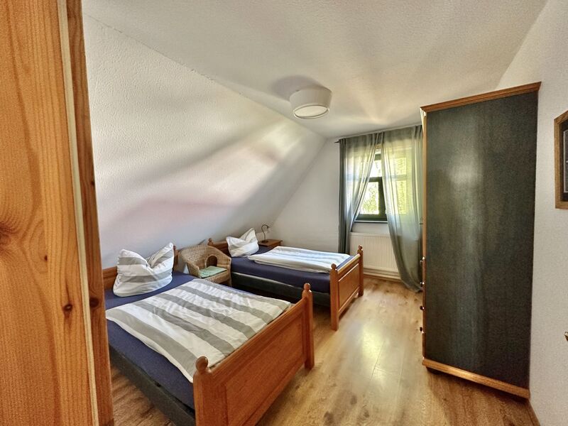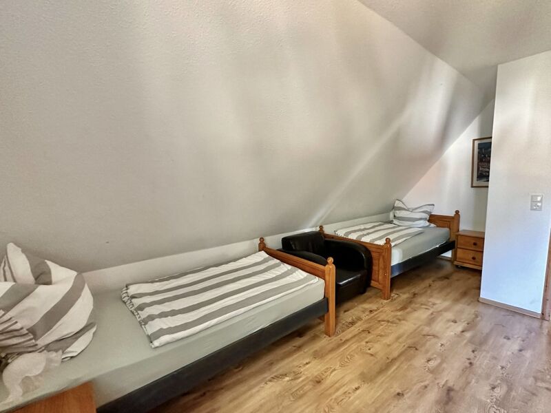 "Rügen", appartement 4-kamers 105 m2 op de 1e verdieping. Woon-/eetkamer met afgeschuinde daken met Sat-TV (Flatscreen TV). 2 kamers met afgeschuinde daken, elke kamer heeft 2 bedden. 1 kamer met afgeschuinde daken met 1 bed en 1 2-pers bed. Kookhoek (oven, afwasmachine, elektrische koffiemachine). Douche/WC. Ter beschikking: Internet (Internet (WiFi), gratis). Niet rokers woning.