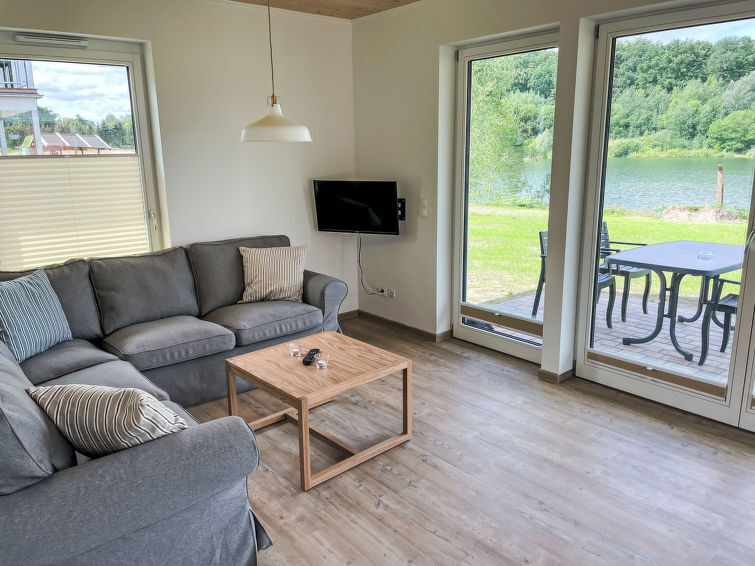 Appartement 3-kamers 58 m2, op de begane grond. Comfortabel en modern ingericht: groot woon-/eetkamer met Sat-TV (Flatscreen TV). Uitgang naar het terras. 1 kamer met 1 2-pers bed (180 cm, lengte 200 cm). 1 kamer met 2 bedden (90 cm, lengte 200 cm). Open keuken (oven, afwasmachine, 4 keramische glas kookplaten, broodrooster, waterkoker, elektrische koffiemachine). Douche/WC. Verwarming. Terrasmeubelen, ligstoelen. Zeer mooi uitzicht op het meer. Ter beschikking: kinderstoel. Internet (WiFi, gratis). Geschikt voor families. Maximaal 2 huisdieren/honden toegestaan.