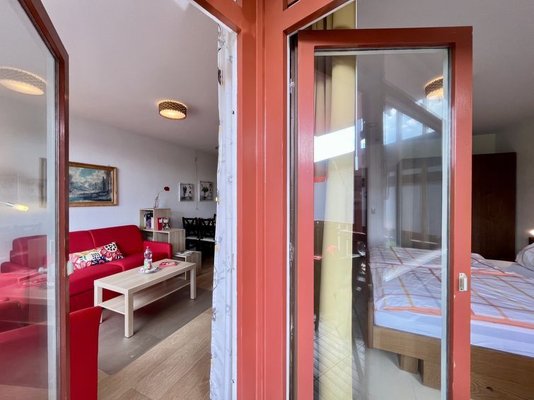 "Schöne Aussicht (App 1406 / EX-Kurhotel)", appartement 2-kamers 45 m2 op de 4e verdieping. Licht, gezellig ingericht: woon-/eetkamer met 1 2-pers divanbed en Sat-TV (Flatscreen TV), stereo-installatie en DVD. Uitgang naar het balkon. 1 2-pers. kamer met 1 2-pers bed. Uitgang naar het balkon. Kleine kookhoek (2-pits kookplaat, magnetron, elektrische koffiemachine). Bad/WC. Balkon 6 m2. Balkonmeubilair. Mooi uitzicht op het landschap en het bos. Ter beschikking: strijkijzer, haardroger. Internet (WiFi, extra). Garage. Koelkast zonder vriesvak, niet rokers woning. Rookmelders.