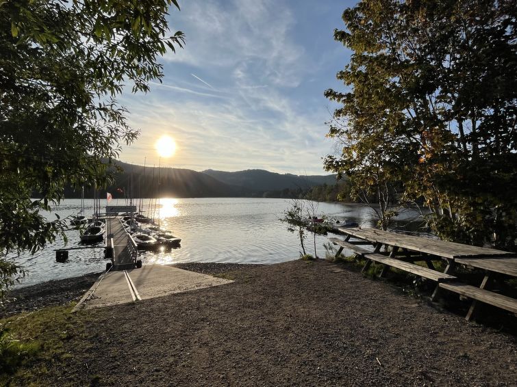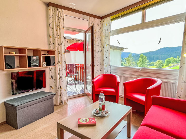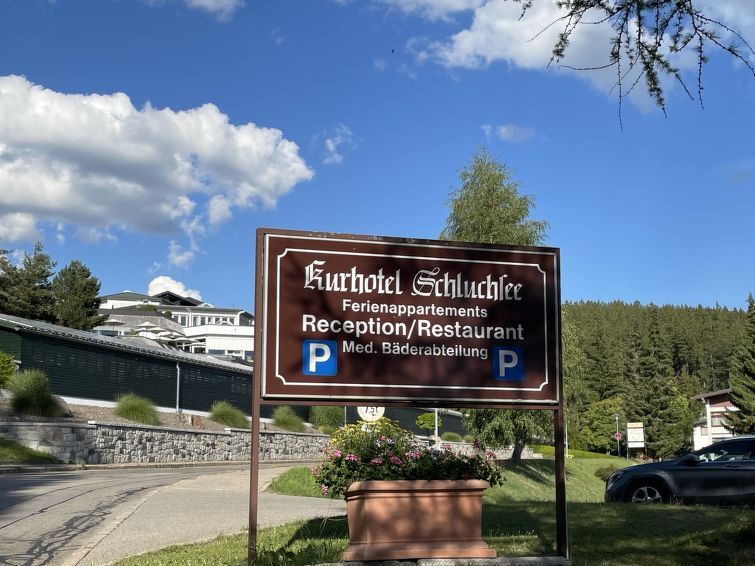 Flatgebouw "EX-Kurhotel Schluchsee", omgeven door bomen en weiden. Boven Schluchsee, 500 m van het centrum, 100 m van de bosrand, 500 m van het meer. Voor medegebruik: groot tuin met gazon en bomen, overdekt zwembad verwarmd (14 x 5 m, 130 - 140 cm diepte, openingstijden zwembad: 07:00-13:00 en 15:00-22:00). Douche/WC bij het zwembad, terras, tuinmeubelen. In het complex: salon, internetaansluiting, Internet (WiFi), sauna (extra). Fitnessruimte (extra). Biljart, speelkamer, tafelvoetbal, lift, berging voor ski's, centrale verwarming, wasmachine (extra), droger (voor medegebruik, extra). Parkeerplaats bij het huis, gemeenschappelijke garage bij het huis. Winkel, levensmiddelenwinkel, supermarkt 600 m, winkelcentrum 10 km, restaurant, bakkerij, café 600 m, fietsverhuur 500 m, centrum te voet bereikbaar in 10 minuten, bushalte 50 m, treinstation 800 m, zandstrand 500 m, 300 m, openluchtzwembad 800 m, meer (zwemmen) 500 m, meer Schluchsee 500 m. Zeilschool 800 m, tennis, tennishal 200 m, wandelroutes 1 m vanaf het huis, fietspad 50 m, skilift 2 km, rodelbaan 50 m, langlaufloipe 200 m, kinderspeelplaats 50 m, Vismogelijkheden 3 km. Attracties in de buurt: Staatsbrauerei Rothaus 10 km, Schwarzwaldhaus der Sinne 10 km, Dom St. Blasien 15 km, Badeparadies Titisee-Neustadt 25 km, Freiburg 55 km, Spasspark Hochschwarzwald 500 m. Bekende skigebieden kunnen gemakkelijk worden bereikt: Feldberg / Hochschwarzwald 20 km. Bekende meren kunnen gemakkelijk worden bereikt: Schluchsee 500 m, Titisee 25 km. Wandelgebied Schluchseer Jägersteig 1 km, Rothauser Land 8 km, Schluchseegebiet / Feldberggebiet.
