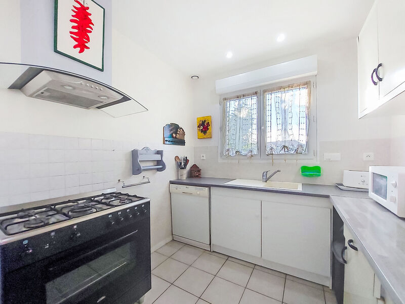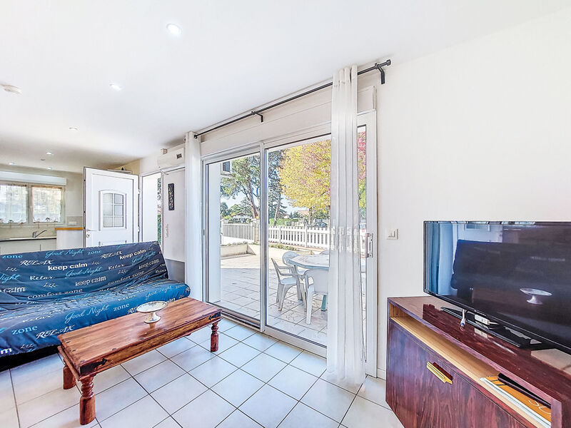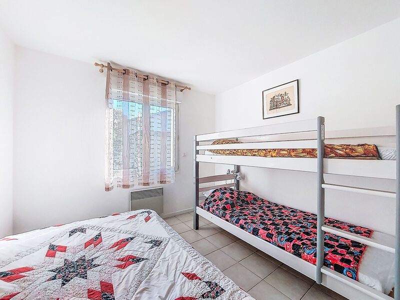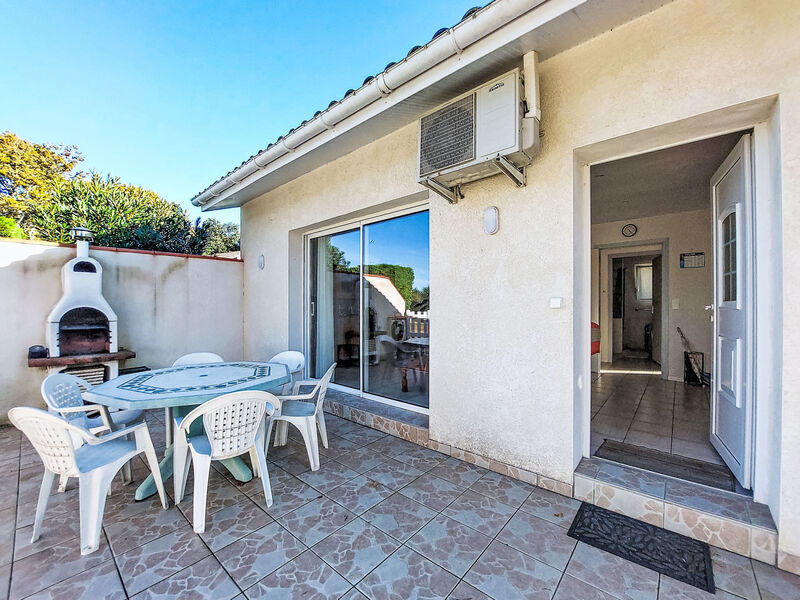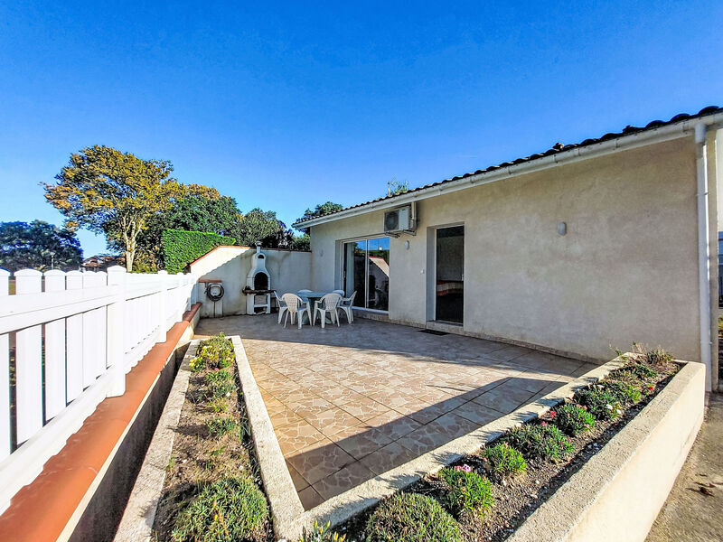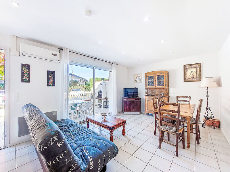 Huis 3-kamers 64 m2. Comfortabel ingericht: woon-/eetkamer met Flatscreen TV, elektrische kachel en air-conditioning. 1 kamer 10 m2 met 1 2-pers bed (140 cm, lengte 190 cm). 1 kamer 12 m2 met 1 x 2 stapelbedden (90 cm, lengte 190 cm), 1 2-pers bed (140 cm, lengte 190 cm). Keuken (oven, afwasmachine, 5 kookpitten (vlammen), broodrooster, waterkoker, magnetron, diepvriezer, elektrische koffiemachine, pads voor de koffiemachine (TASSIMO)). Douche, aparte WC. Terras 36 m2, op het noorden gelegen. Terrasmeubelen. Ter beschikking: wasmachine, strijkijzer. Internet (WiFi). Aanbod door een particulier volgens art. 155, IV van CGI. 40310000549C9
