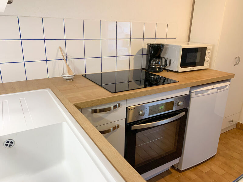 Appartement 2-kamers 27 m2, op de begane grond. Woon-/eetkamer met 1 2-pers divanbed (130 cm, lengte 200 cm), TV. Uitgang naar de loggia. 1 kamer met 1 2-pers bed (140 cm, lengte 190 cm). Kookhoek (4-pits kookplaat, oven) met doorgeefluik. Badkamer, aparte WC. Terras 20 m2, zithoek in de tuin. Loggia. Ter beschikking: Internet (Internet (WiFi), extra). Parkeerplaats. Koelkast zonder vriesvak. Rookmelders.