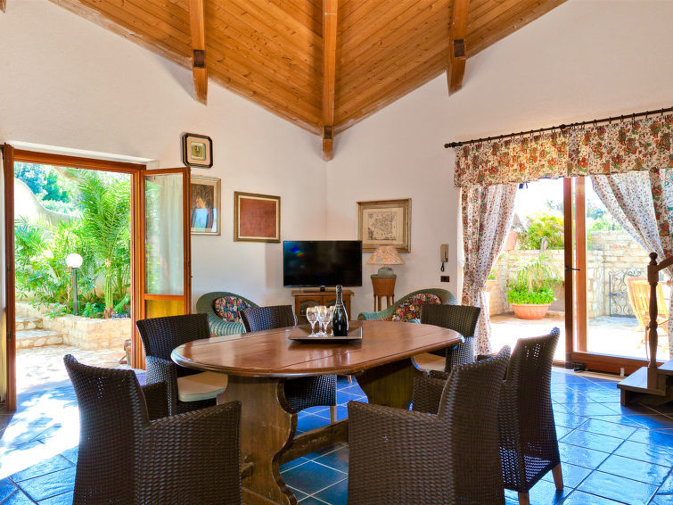 Villa "Le Palme", omgeven door bomen. In het gehucht Bonagia, 4.5 km van het centrum van Valderice, 11 km van het centrum van Trapani, geïsoleerde, rustige, zonnige ligging villa wijk, 1.5 km van zee, 2 km van het strand. Voor alleengebruik: terrein 600 m2 (omheind), tuin op verschillende niveaus bloemen en bomen, openluchtzwembad (9 x 11 m, seizoensgebonden beschikbaarheid: 01.Apr. - 31.Okt.). Buitendouche, tuinmeubelen, barbecue, onderhoud zwembad door de eigenaar/tuinman. Verwarming alleen beschikbaar van 01.Dec. - 31.Mrt.. Trappenweg (4 treden) naar het huis. Openbare parkeerplaatsen in de straat. Supermarkt 1.5 km, restaurant 2 km, bar 2 km, bushalte 12 km, treinstation "Trapani" 12 m, veerboot "Trapani Aliscafi per Isole Egadi" 12 km, stenenstrand "Bonagia" 2 km. Attracties in de buurt: Grotta di Mangiapane 9 km, Erice 12 km, San Vito lo Capo 28 km, Parco Archeologico di Segesta 35 km, Marsala-Saline 40 km, Palermo 95 km. Wandelgebied Riserva Naturale Monte Cofano 11 km, Riserva Naturale dello Zingaro 39 km. Auto noodzakelijk.