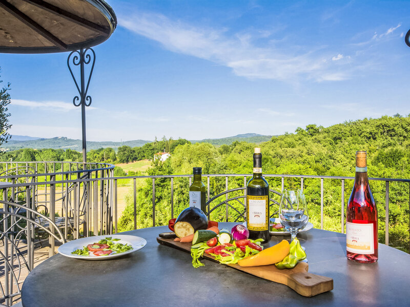 Boerenbedrijf waar olijfolie en Chianti DOCG wijn geproduceerd worden, met de mogelijkheid om mee te helpen met de wijnoogstt (eind september) en de olijvenoogst (november). Omgeven door 8 ha wijn- en olijfboomgaarden en een karakteristiek Toscaans landschap. In het hart van de culturele driehoek Florence-Siena-Arezzo, ideaal uitgangspunt voor culturele uitstapjes die ook georganiseerd kunnen worden door de eigenaren (tegen betaling, transfers en excursies). Alle winkels en voorzieningen in Bucine. Outlet Prada 3 km. Boerderij "Le Mura", gerenoveerd, omgeven door bomen en velden. 9 appartementen in de woning. 3 km van het centrum van Bucine, 25 km van het centrum van Arezzo, 35 km van het centrum van Siena, rustige ligging op een heuvel, te midden van groen. Voor medegebruik: openluchtzwembad (7 x 14 m, 160 - 160 cm diepte, seizoensgebonden beschikbaarheid: 20.Mei. - 30.Sep.) met trap. Buitendouche, kinderspeelplaats (glijbaan, schommel). In het complex: restaurant, Internet (WiFi), zonneterras, centrale verwarming, wasmachine (voor medegebruik, extra), Verwarming ter plaatse te betalen, verwarming alleen beschikbaar van 01.Nov. - 15.Apr.. Wissel van linnengoed (extra wissel te betalen). Schoonmaak op verzoek (extra). Huishoudelijke hulp op verzoek (extra). Toegangsweg tot aan het huis. Parkeerplaats bij het huis. Levensmiddelenwinkel 3 km, supermarkt 3 km, restaurant 3 km, bushalte 4 km, treinstation "Bucine", thermaalbad 20 km. Attracties in de buurt: Firenze 55 km, Siena 35 km, Arezzo 30 km. Geschikt voor evenementen.