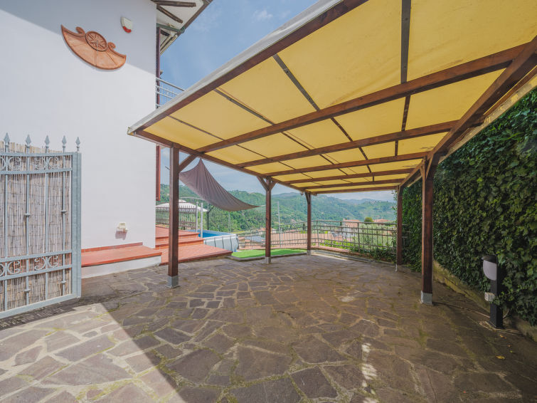"Casa Lorena", halfvrijstaand huis 4-kamers 140 m2, op de begane grond. Ruim en licht, volledig gerenoveerd, zeer comfortabel en modern ingericht: woonkamer met TV (Flatscreen TV). Uitgang naar de tuin, naar het zwembad. Open keuken (5-pits kookplaat, oven, Gasfornuis, broodrooster, waterkoker, elektrische koffiemachine) met eettafel. Uitgang naar het terras. Douche/bidet/WC. Gas-verwarming, air-conditioning. Verwarming alleen beschikbaar van 01.11. tot 15.04. Souterrain: groot woon-/eetkamer met 1 2-pers divanbed en open haard (alleen decoratie), eettafel, kookhoek en TV (Flatscreen TV). Bovenverdieping: 2 2-pers. kamers, elke kamer heeft air-conditioning. Uitgang naar het balkon. Douche/bidet/WC. Klein terras, kleine tuin. Terrasmeubelen, barbecue (verrijdbaar), ligstoelen, zitgelegenheid. Zeer mooi panoramazicht op zee en het dal. Ter beschikking: wasmachine, droger, strijkijzer, haardroger. Internet (Internet (WiFi), gratis). Parkeerplaats (overdekt, omheind, 1 Auto). Geschikt voor families. Rookvrij huis. Rookmelders, brandblusser. IT046018C2IVD8GYP9