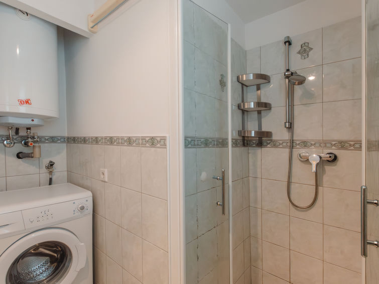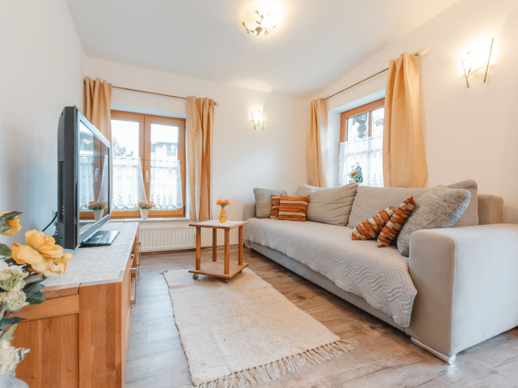 Bungalow 3-kamers 55 m2. Modern en smaakvol ingericht: hal. Woon-/eetkamer met eettafel, Kabel-TV en Flatscreen TV. 1 2-pers. kamer. 1 kleine 2-pers. kamer. Open keuken (oven, afwasmachine, 4 keramische glas kookplaten, broodrooster, waterkoker, magnetron, diepvriezer, elektrische koffiemachine). Douche, aparte WC. Terras. Terrasmeubelen. Mooi uitzicht op de bergen. Ter beschikking: Internet (WiFi, gratis). Rookvrij huis. 2 huisdieren/honden toegestaan. Rookmelders. WiFi werkt soms alleen buiten het huis. Let op: Kinderen en baby's worden beschouwd als een volledig persoon en kunnen niet gratis worden genomen. 50403-000215-2020