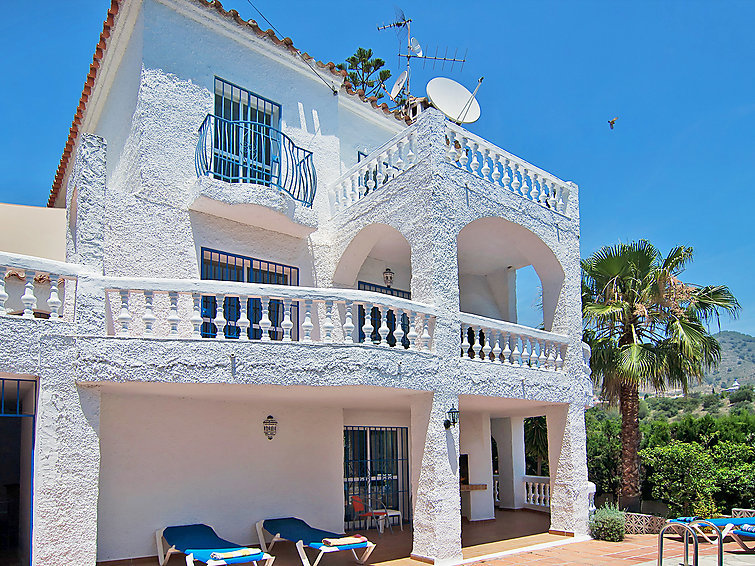 Burriana 1 km van Nerja: Groot, gezellige villa "Villa Pueblo Jara". In de plaats, 1.9 km van het centrum van Nerja, rustige ligging villa wijk, 600 m van zee, van het strand, op het zuiden. Voor alleengebruik: kleine, mooie tuin op verschillende niveaus, openluchtzwembad niervormig (4 x 8 m, 100 - 200 cm diepte, seizoensgebonden beschikbaarheid: 01.Jan. - 31.Dec.). Patio (150 m2), barbecue. Winkel, levensmiddelenwinkel, supermarkt, winkelcentrum 20 km, restaurant, bar 400 m, bakkerij, café, internet cafe, voetgangersgebied 700 m, fietsverhuur 400 m, biertuin 400 m, bushalte "Bus local" 20 m, treinstation "Málaga" 20 km, veerboot "Málaga" 20 km, zandstrand "Burriana" 600 m, duikschool 300 m, thermaalbad 500 m. Jachthaven 20 km, jachthaven 20 km, golfterrein (18 holes) 20 km, surfschool 20 km, zeilschool 20 km, tennis 500 m, manege 1 km, wandelroutes 1 km vanaf het huis, fietspad 300 m, skipisten 70 km, skischool 70 km. Attracties in de buurt: Museo de Nerja. 600 m, Centro Cultural variedad de conciertos. 2 km, Cuevas de Nerja. 3 km, Pueblo de Frigiliana. 4 km, Deportes acuaticos en la playa. 600 m, Parques infantiles en la playa. Bekende skigebieden kunnen gemakkelijk worden bereikt: Sierra Nevada en Granada 70 km. Bekende meren kunnen gemakkelijk worden bereikt: La Viñuela (pantano) en Velez-Málaga 20 km. Wandelgebied Montañas de Almijara 1 km. Geen lift. Geschikt voor families. De eigenaar accepteert geen jeugdgroepen. Laden en lossen van de baggage is mogelijk bij het huis.