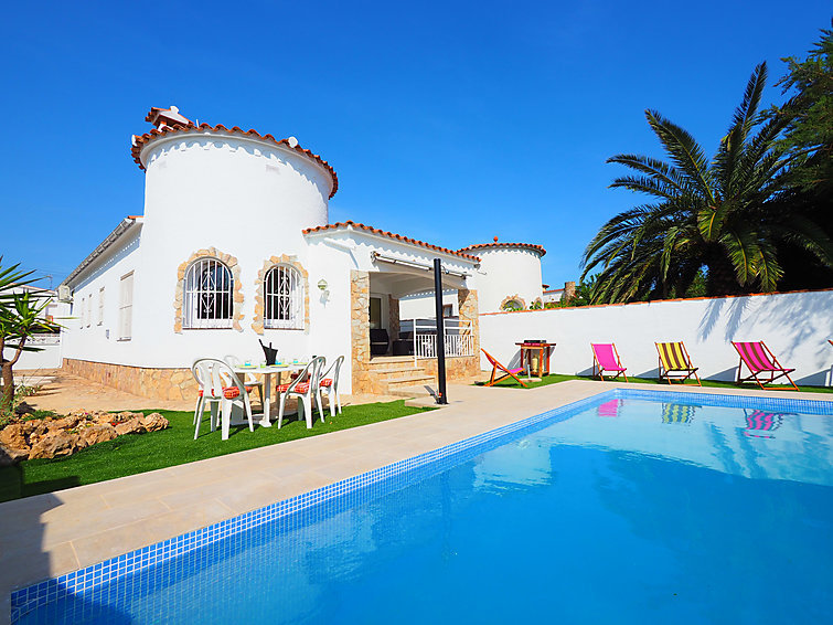 Zeer moderne, mooi eengezinswoning "Alberes", gerenoveerd in 2015. In de wijk Alberes, 1.2 km van het centrum van Empuriabrava, rustige, zonnige ligging villa wijk, gebied met weinig verkeer, 1.2 km van zee, 350 m van het kanaal, 450 m van de rivier, op het zuidwesten. Voor alleengebruik: openluchtzwembad hoekig (7 x 3 m, seizoensgebonden beschikbaarheid: 30.Mei. - 30.Okt.). Buitendouche, patio, prieel, tuinmeubelen, barbecue. In het huis: air-conditioning. Parkeerplaats, eigen garage. Winkel 300 m, levensmiddelenwinkel 300 m, supermarkt 400 m, restaurant 260 m, bar 300 m, bakkerij 230 m, bushalte 2.8 km, zandstrand "Empuriabrava" 1.2 km. Jachthaven 1.8 km, golfterrein (15 holes) 8 km, surfschool 2 km, zeilschool 2 km, tennis 2 km, midgetgolf 1.5 km, manege 3 km, wandelroutes 400 m vanaf het huis, fietspad 400 m. Attracties in de buurt: Centro paracaidismo y túnel del viento 2 km, Parque Acuático Roses 10 km, Museo Dalí Figueres 15 km, Castillo de Perelada 12 km, Ruïnas de St. Martí de Empúries 21 km, Monasterio de Sant Pere de Rodes 23 km. De sleuteloverdracht vindt plaats bij het agentschap Interhome in Empuriabrava.