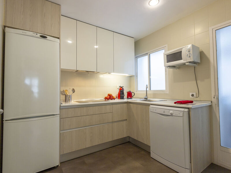 Appartement 3-kamers 80 m2 op de 3e verdieping. Smaakvol en gezellig ingericht: woon-/eetkamer met Digitale TV, Flatscreen TV en air-conditioning. 1 kamer met 1 2-pers bed (150 cm), bad/bidet/WC en air-conditioning. 1 kamer met 1 uitschuifbaar bed (2 pers. 2 x 90 cm), air-conditioning. Keuken (oven, afwasmachine, 4 keramische glas kookplaten, magnetron, diepvriezer). Bad/bidet/WC. Verwarming. Ter beschikking: wasmachine. Internet (WiFi, gratis). VT-8927 // Reg. Nr.: ESFCNT00002810200008241600000000000000000000000000003